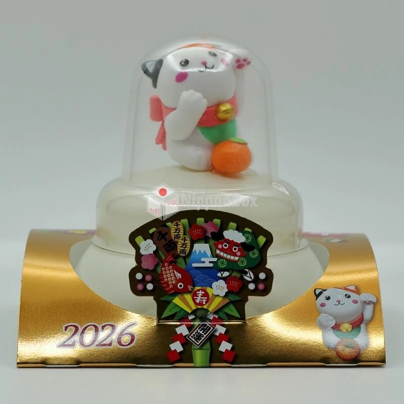 Kagami Mochi - with a Lucky Cat (Manekineko) as decoration on top.